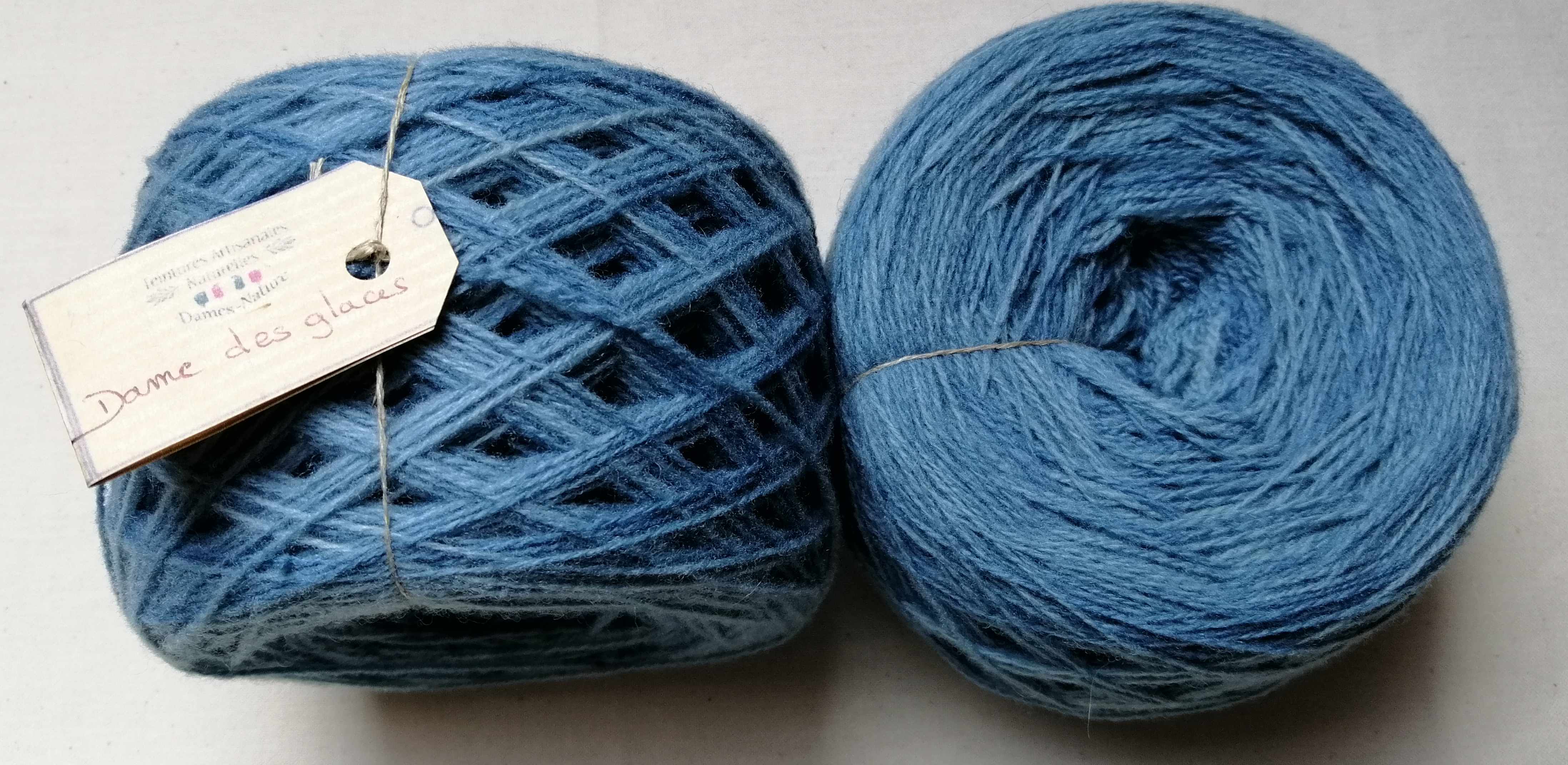 Teinture, mise en échevette et étiquetage entièrement fait main .